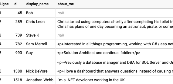 En fait, ce sont les données brutes tel qu’elles existent dans bigquery-public-data.stackoverflow.users