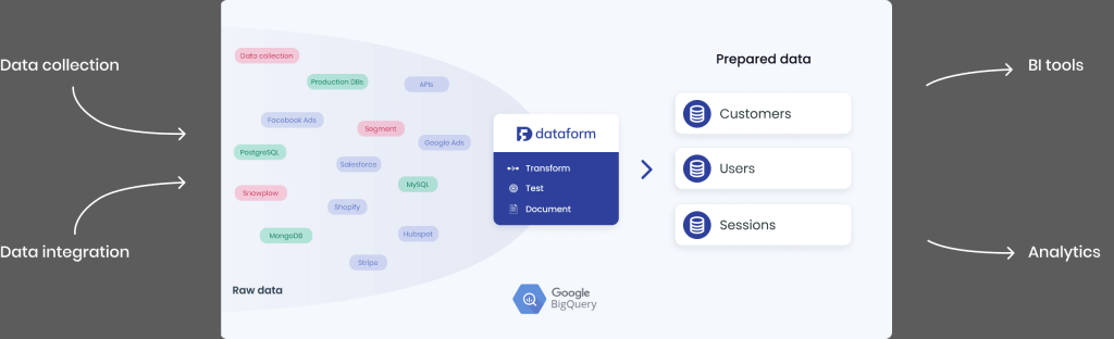 Dataform, nouvellement acquis par Google, se définit comme un OS pour les entrepôts de données cloud. Il gère nativement les point cités plus haut.